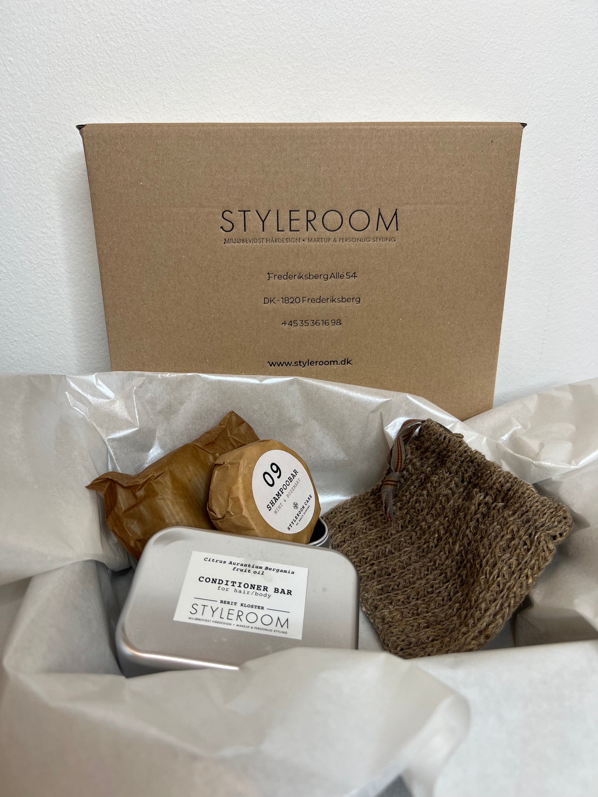SHAMPOOBAR/CONDITIONERBAR MED HÅNDLAVET HØRPOSE
